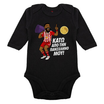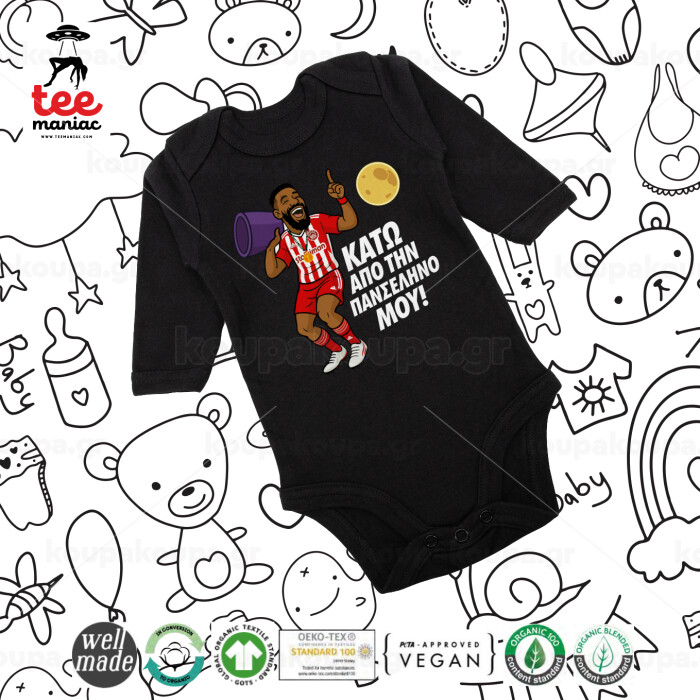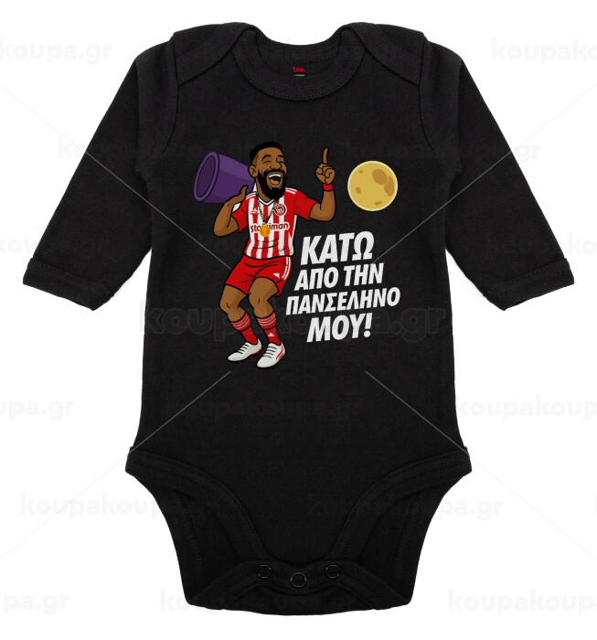Ροντινέι, "ΚΑΤΩ ΑΠΟ ΤΗΝ ΠΑΝΣΕΛΗΝΟ ΜΟΥ!", Μακρυμάνικο βρεφικό φορμάκι, 0-18 μηνών, ΜΑΥΡΟ, 100% Organic Cotton