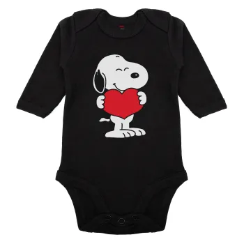 Snoopy takemy heart, Μακρυμάνικο βρεφικό φορμάκι, 0-18 μηνών, ΜΑΥΡΟ, 100% Organic Cotton