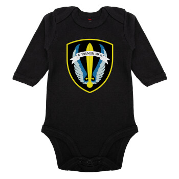 Έμβλημα Μονάδων Καταδρομών Ο Τολμων Νικα - Λοκ, Μακρυμάνικο βρεφικό φορμάκι, 0-18 μηνών, ΜΑΥΡΟ, 100% Organic Cotton
