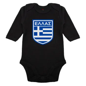 Ελλάς, Μακρυμάνικο βρεφικό φορμάκι, 0-18 μηνών, ΜΑΥΡΟ, 100% Organic Cotton
