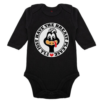 I'll Just Have The Breast Please, Μακρυμάνικο βρεφικό φορμάκι, 0-18 μηνών, ΜΑΥΡΟ, 100% Organic Cotton