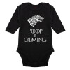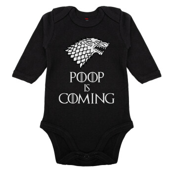 POOP Is Coming, Μακρυμάνικο βρεφικό φορμάκι, 0-18 μηνών, ΜΑΥΡΟ, 100% Organic Cotton