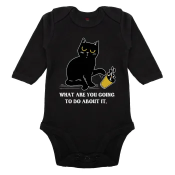 CAT, what are you going to do about it!, Μακρυμάνικο βρεφικό φορμάκι, 0-18 μηνών, ΜΑΥΡΟ, 100% Organic Cotton