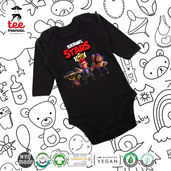 Brawl Stars Desert, Μακρυμάνικο βρεφικό φορμάκι, 0-18 μηνών, ΜΑΥΡΟ, 100% Organic Cotton