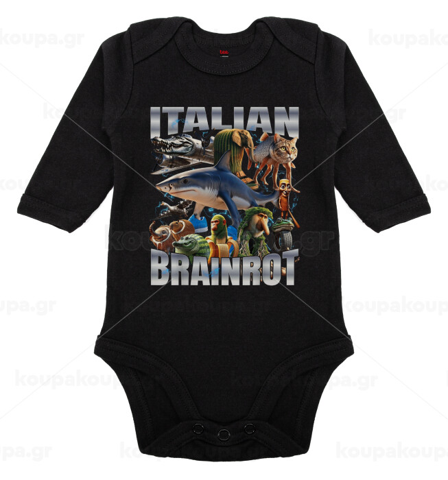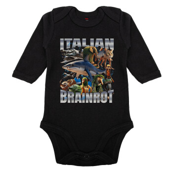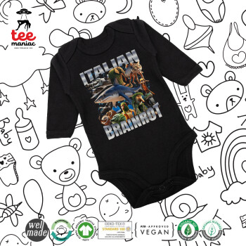 Italian Brainrot, Μακρυμάνικο βρεφικό φορμάκι, 0-18 μηνών, ΜΑΥΡΟ, 100% Organic Cotton