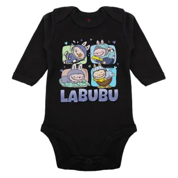 Labubu, Μακρυμάνικο βρεφικό φορμάκι, 0-18 μηνών, ΜΑΥΡΟ, 100% Organic Cotton