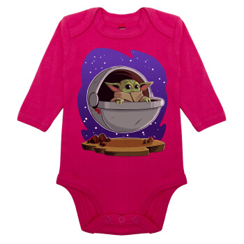 Baby Yoda mandalorian, Μακρυμάνικο βρεφικό φορμάκι, 0-18 μηνών, ΡΟΖ, 100% Organic Cotton