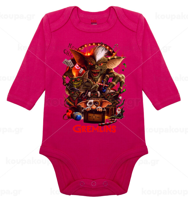 Gremlins, Μακρυμάνικο βρεφικό φορμάκι, 0-18 μηνών, ΡΟΖ, 100% Organic Cotton