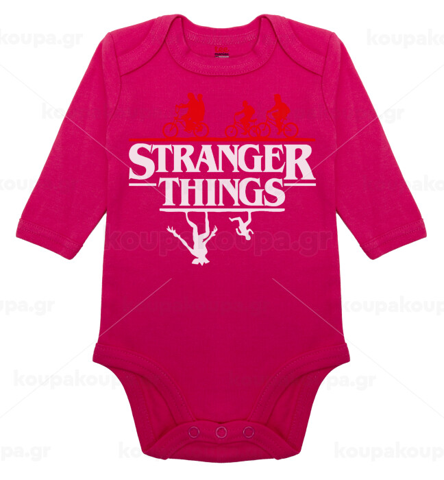 Stranger Things upside down, Μακρυμάνικο βρεφικό φορμάκι, 0-18 μηνών, ΡΟΖ, 100% Organic Cotton