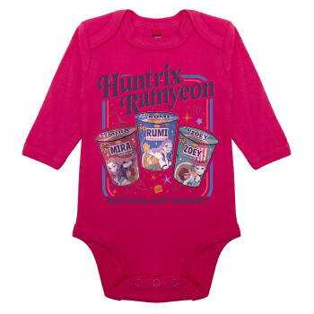 Ramyeon Huntrix, Μακρυμάνικο βρεφικό φορμάκι, 0-18 μηνών, ΡΟΖ, 100% Organic Cotton