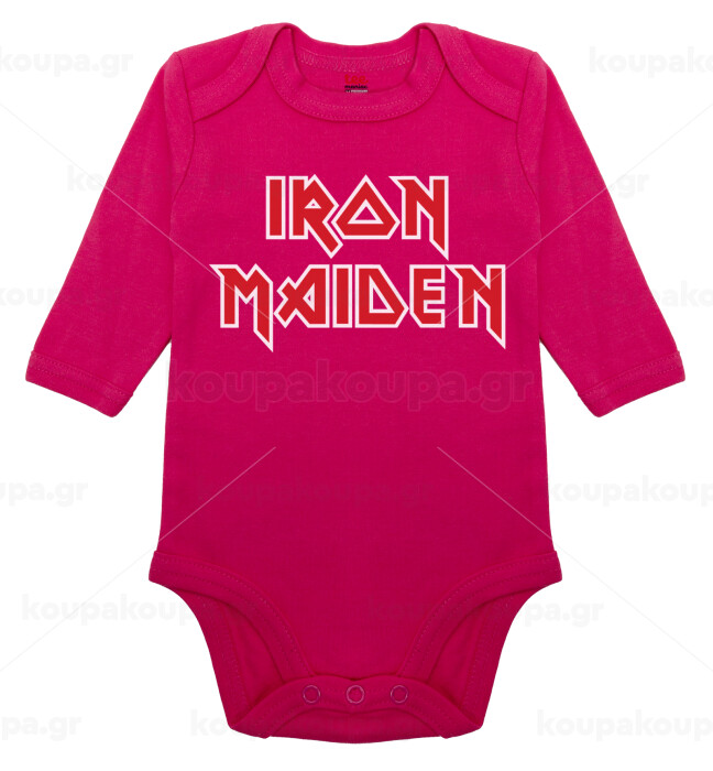 Iron maiden, Μακρυμάνικο βρεφικό φορμάκι, 0-18 μηνών, ΡΟΖ, 100% Organic Cotton