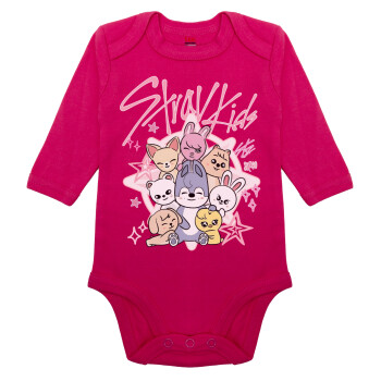 Stray Kids Pink, Μακρυμάνικο βρεφικό φορμάκι, 0-18 μηνών, ΡΟΖ, 100% Organic Cotton