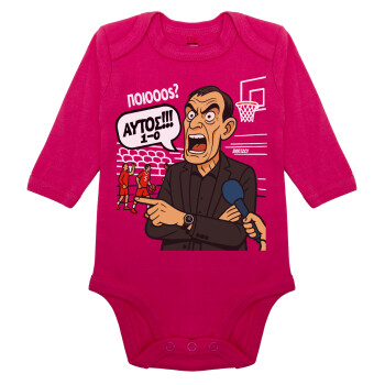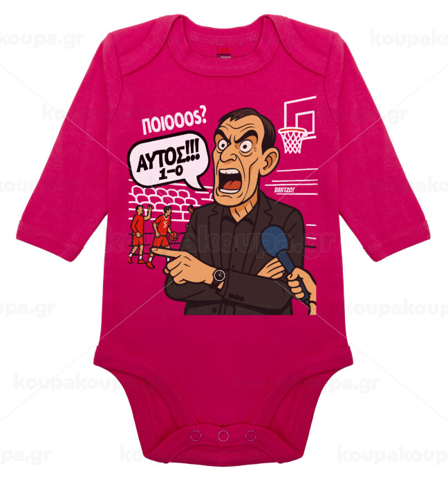 Μπαρτζό, Ποιος? Αυτός!!! 1-0, Μακρυμάνικο βρεφικό φορμάκι, 0-18 μηνών, ΡΟΖ, 100% Organic Cotton