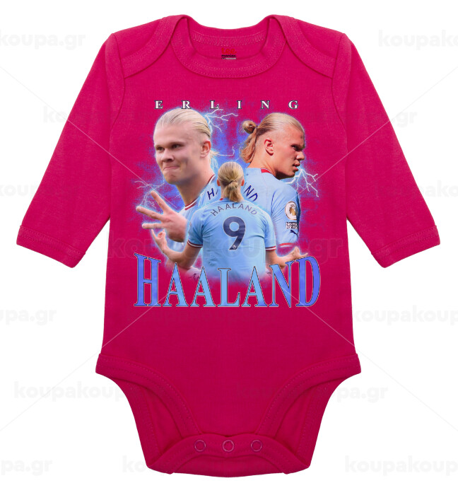Erling Haaland, Μακρυμάνικο βρεφικό φορμάκι, 0-18 μηνών, ΡΟΖ, 100% Organic Cotton