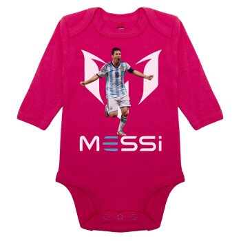 Λιονέλ Μέσι, Leo Messi, Μακρυμάνικο βρεφικό φορμάκι, 0-18 μηνών, ΡΟΖ, 100% Organic Cotton