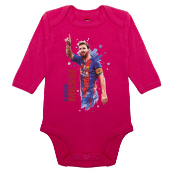 Λιονέλ Μέσι, Μακρυμάνικο βρεφικό φορμάκι, 0-18 μηνών, ΡΟΖ, 100% Organic Cotton