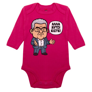 Κουτσούμπας, "Αλλά αυτοί είστε!", Μακρυμάνικο βρεφικό φορμάκι, 0-18 μηνών, ΡΟΖ, 100% Organic Cotton