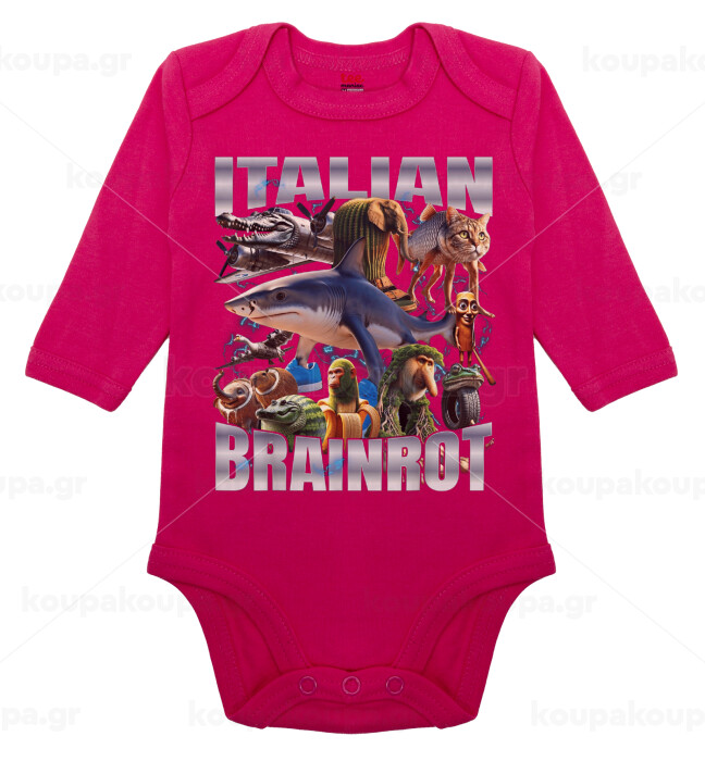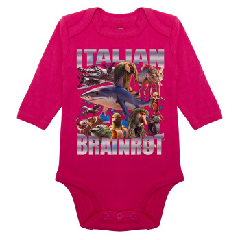 Italian Brainrot, Μακρυμάνικο βρεφικό φορμάκι, 0-18 μηνών, ΡΟΖ, 100% Organic Cotton