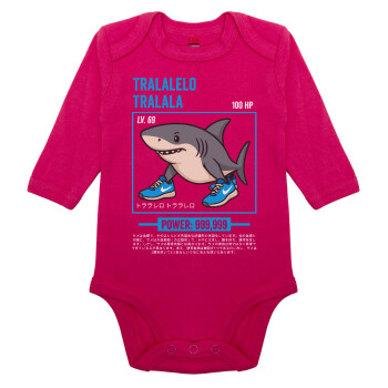 Tralalero Tralala, Μακρυμάνικο βρεφικό φορμάκι, 0-18 μηνών, ΡΟΖ, 100% Organic Cotton