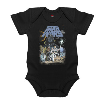 Star Wars, Βρεφικό φορμάκι μωρού, 0-18 μηνών, ΜΑΥΡΟ, 100% Organic Cotton, κοντομάνικο