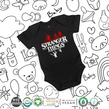 Stranger Things upside down, Βρεφικό φορμάκι μωρού, 0-18 μηνών, ΜΑΥΡΟ, 100% Organic Cotton, κοντομάνικο