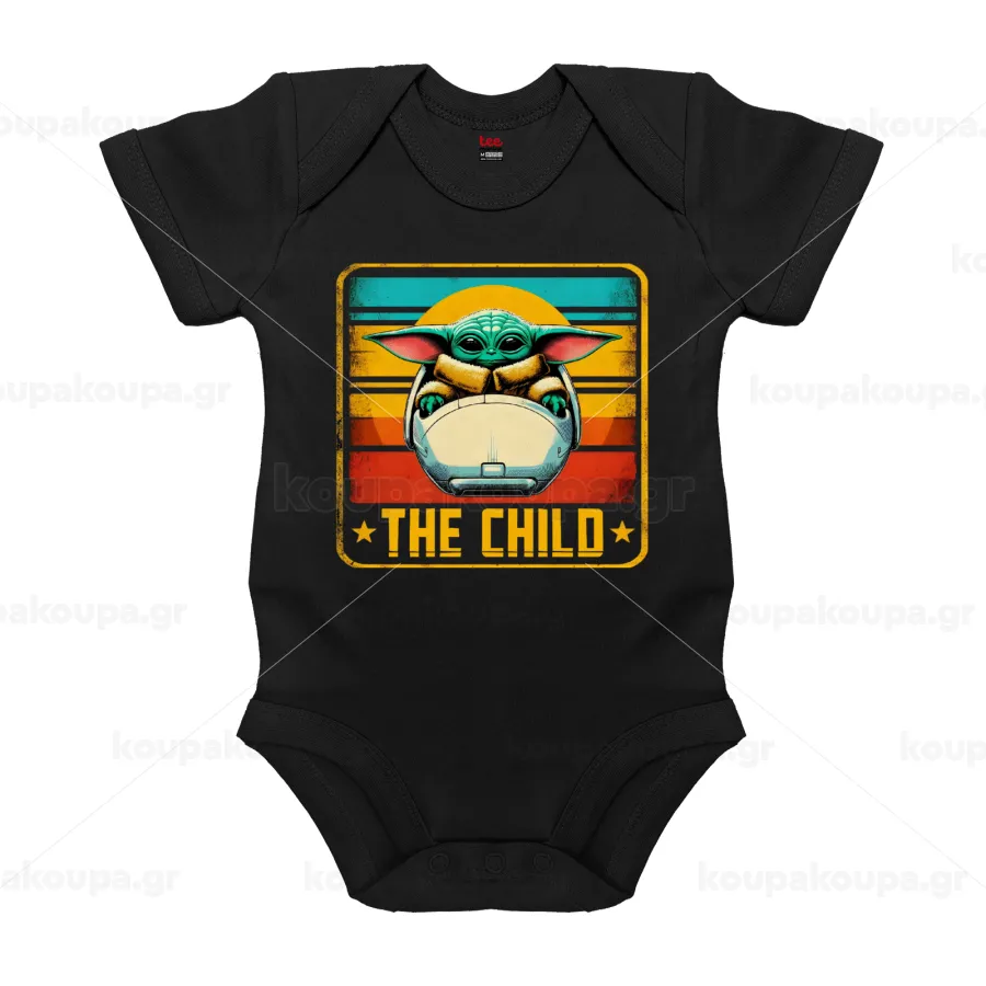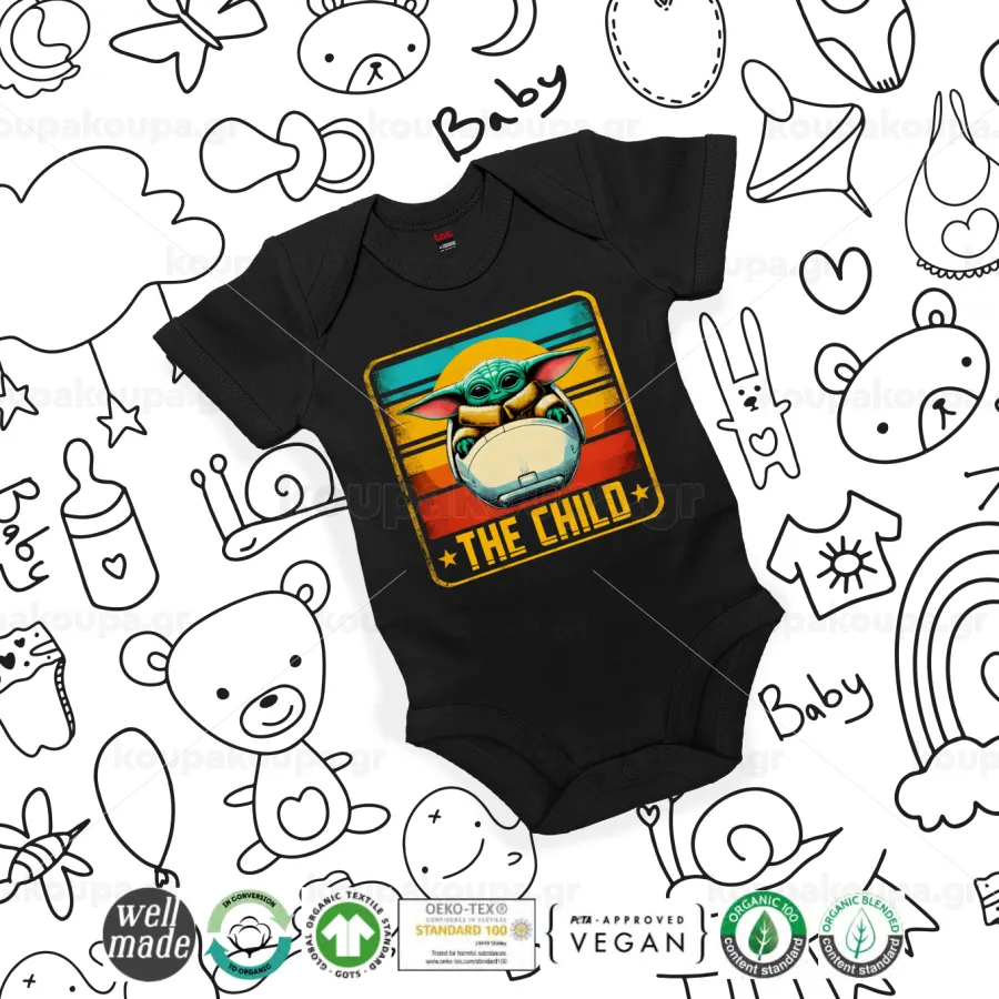 The Child, Βρεφικό φορμάκι μωρού, 0-18 μηνών, ΜΑΥΡΟ, 100% Organic Cotton, κοντομάνικο