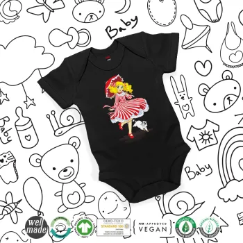 Candy, Βρεφικό φορμάκι μωρού, 0-18 μηνών, ΜΑΥΡΟ, 100% Organic Cotton, κοντομάνικο