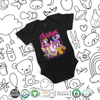 Huntrix Saja Boys, Βρεφικό φορμάκι μωρού, 0-18 μηνών, ΜΑΥΡΟ, 100% Organic Cotton, κοντομάνικο