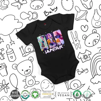 HUNTR/X K-pop girl group, Βρεφικό φορμάκι μωρού, 0-18 μηνών, ΜΑΥΡΟ, 100% Organic Cotton, κοντομάνικο