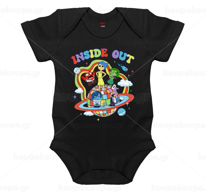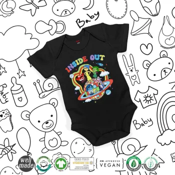 Inside Out, Βρεφικό φορμάκι μωρού, 0-18 μηνών, ΜΑΥΡΟ, 100% Organic Cotton, κοντομάνικο