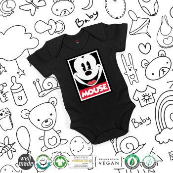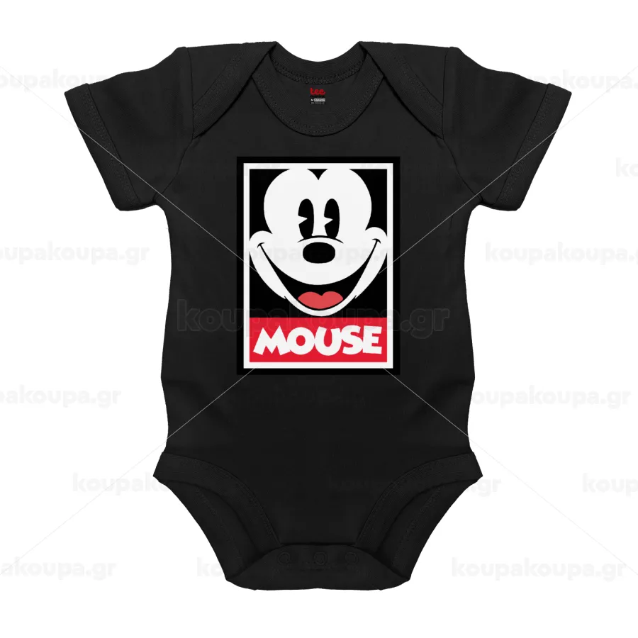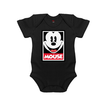 Μίκυ Μάους, Βρεφικό φορμάκι μωρού, 0-18 μηνών, ΜΑΥΡΟ, 100% Organic Cotton, κοντομάνικο