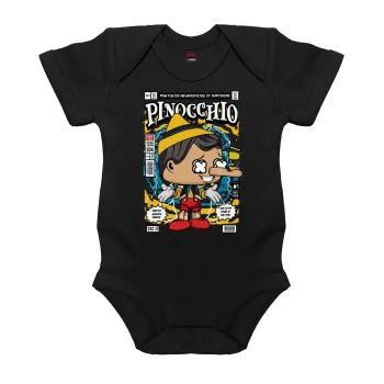 Pinocchio, Βρεφικό φορμάκι μωρού, 0-18 μηνών, ΜΑΥΡΟ, 100% Organic Cotton, κοντομάνικο