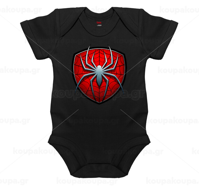 Spider-man, Βρεφικό φορμάκι μωρού, 0-18 μηνών, ΜΑΥΡΟ, 100% Organic Cotton, κοντομάνικο