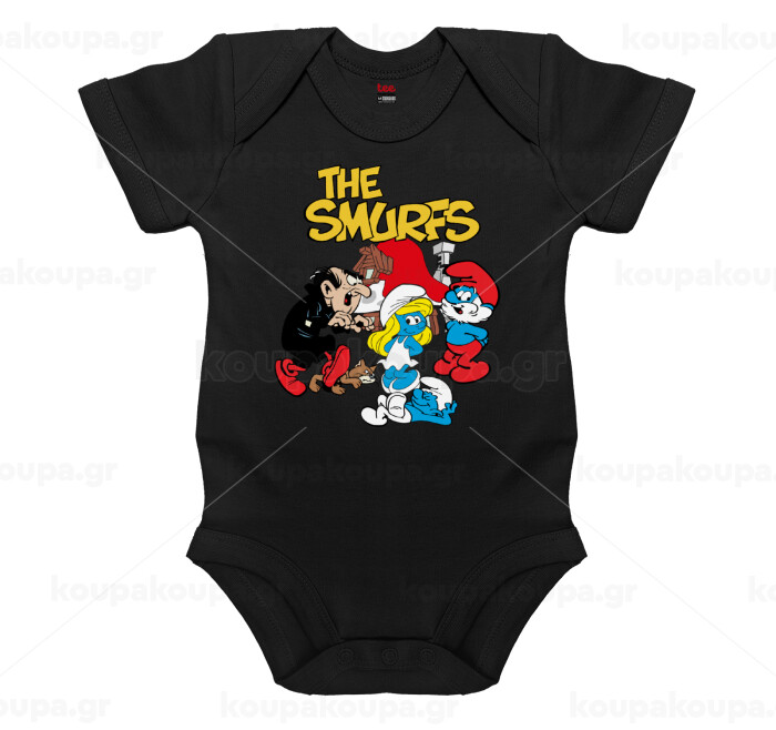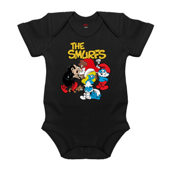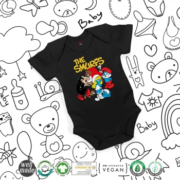 Τα στρουμφάκια, Βρεφικό φορμάκι μωρού, 0-18 μηνών, ΜΑΥΡΟ, 100% Organic Cotton, κοντομάνικο