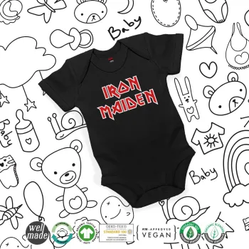 Iron maiden, Βρεφικό φορμάκι μωρού, 0-18 μηνών, ΜΑΥΡΟ, 100% Organic Cotton, κοντομάνικο