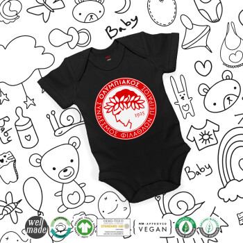 Ολυμπιακός, Βρεφικό φορμάκι μωρού, 0-18 μηνών, ΜΑΥΡΟ, 100% Organic Cotton, κοντομάνικο