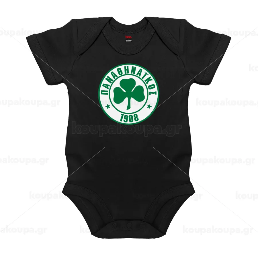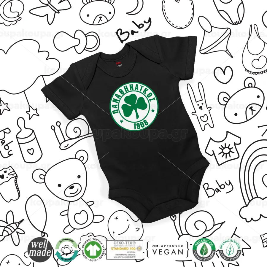 ΠΑΟ Παναθηναϊκός, Βρεφικό φορμάκι μωρού, 0-18 μηνών, ΜΑΥΡΟ, 100% Organic Cotton, κοντομάνικο