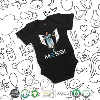 Λιονέλ Μέσι, Leo Messi, Βρεφικό φορμάκι μωρού, 0-18 μηνών, ΜΑΥΡΟ, 100% Organic Cotton, κοντομάνικο