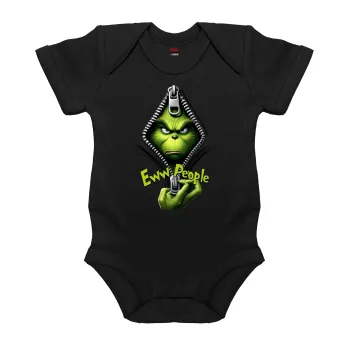 Grinch, eww people, Βρεφικό φορμάκι μωρού, 0-18 μηνών, ΜΑΥΡΟ, 100% Organic Cotton, κοντομάνικο