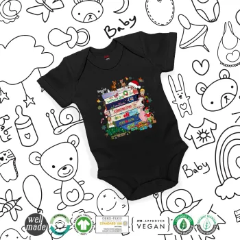 Xmas Classic movies, Βρεφικό φορμάκι μωρού, 0-18 μηνών, ΜΑΥΡΟ, 100% Organic Cotton, κοντομάνικο