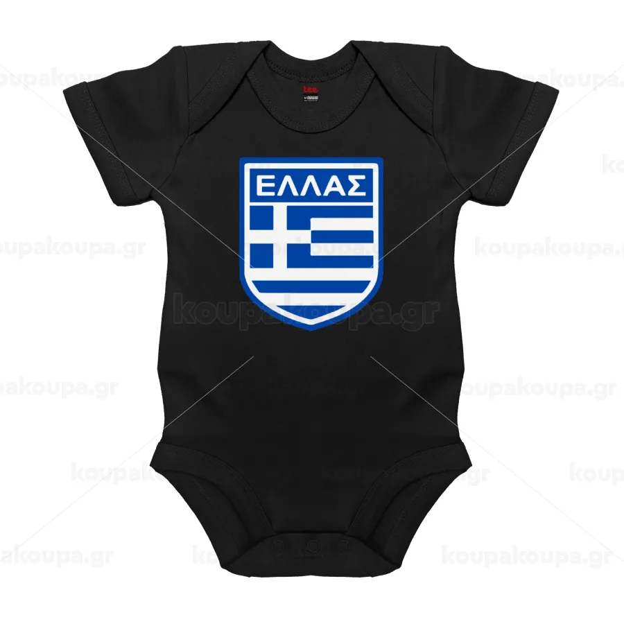 Ελλάς, Βρεφικό φορμάκι μωρού, 0-18 μηνών, ΜΑΥΡΟ, 100% Organic Cotton, κοντομάνικο