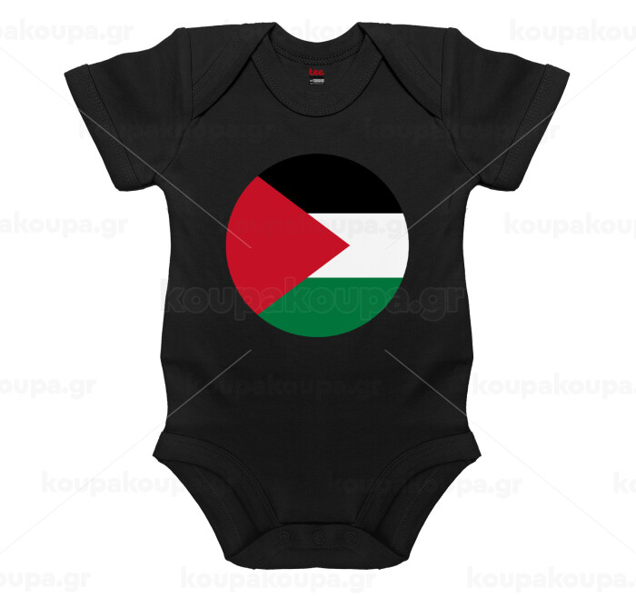 Σημαία Παλαιστίνης, Βρεφικό φορμάκι μωρού, 0-18 μηνών, ΜΑΥΡΟ, 100% Organic Cotton, κοντομάνικο