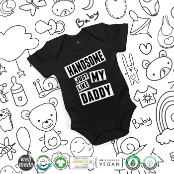 Handsome just like my Daddy, Βρεφικό φορμάκι μωρού, 0-18 μηνών, ΜΑΥΡΟ, 100% Organic Cotton, κοντομάνικο