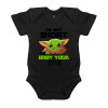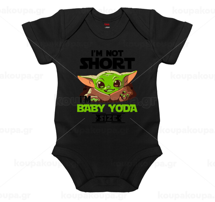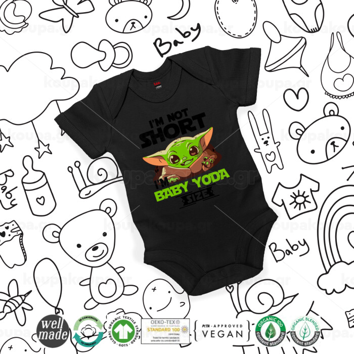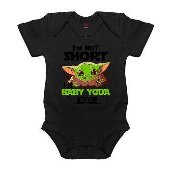 I'm not short, i'm Baby Yoda size, Βρεφικό φορμάκι μωρού, 0-18 μηνών, ΜΑΥΡΟ, 100% Organic Cotton, κοντομάνικο