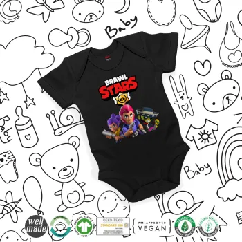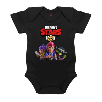 Brawl Stars Blue, Βρεφικό φορμάκι μωρού, 0-18 μηνών, ΜΑΥΡΟ, 100% Organic Cotton, κοντομάνικο