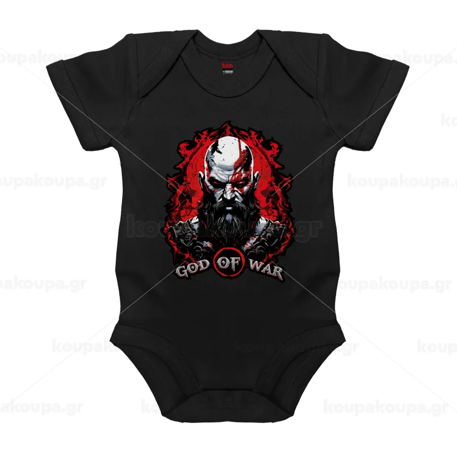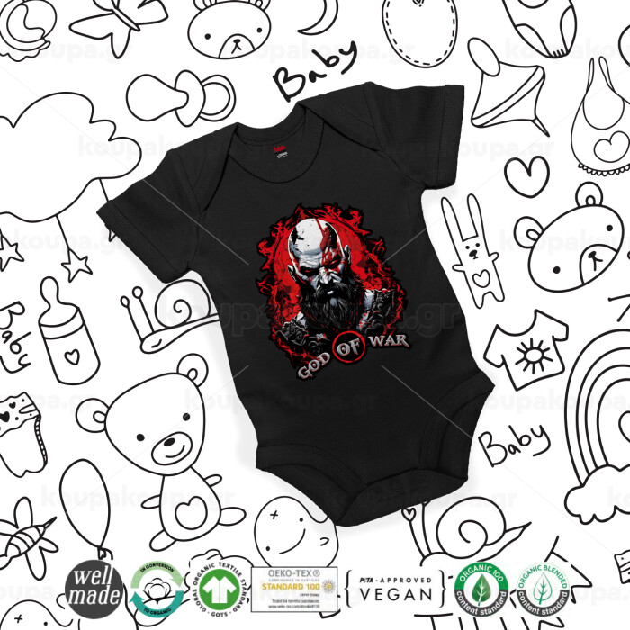 God of war, Βρεφικό φορμάκι μωρού, 0-18 μηνών, ΜΑΥΡΟ, 100% Organic Cotton, κοντομάνικο