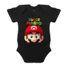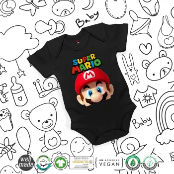 Super mario, Βρεφικό φορμάκι μωρού, 0-18 μηνών, ΜΑΥΡΟ, 100% Organic Cotton, κοντομάνικο