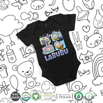 Labubu, Βρεφικό φορμάκι μωρού, 0-18 μηνών, ΜΑΥΡΟ, 100% Organic Cotton, κοντομάνικο