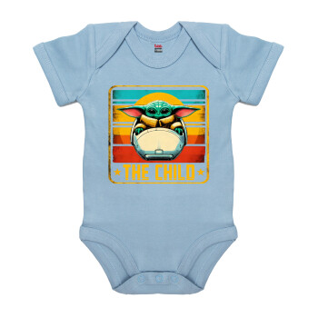 Baby Yoda mandalorian, Βρεφικό φορμάκι μωρού, 0-18 μηνών, Μπλε, 100% Organic Cotton, κοντομάνικο