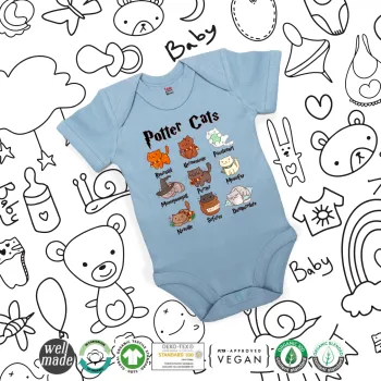Potter Cats, Βρεφικό φορμάκι μωρού, 0-18 μηνών, Μπλε, 100% Organic Cotton, κοντομάνικο